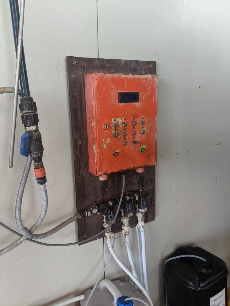 Built to automate the process of filling 50+ 1000l slurry bins with a 1″ hose 4 times per week. It has present and adjustable delivery volume that can be activated on the machine or via a remote control system.